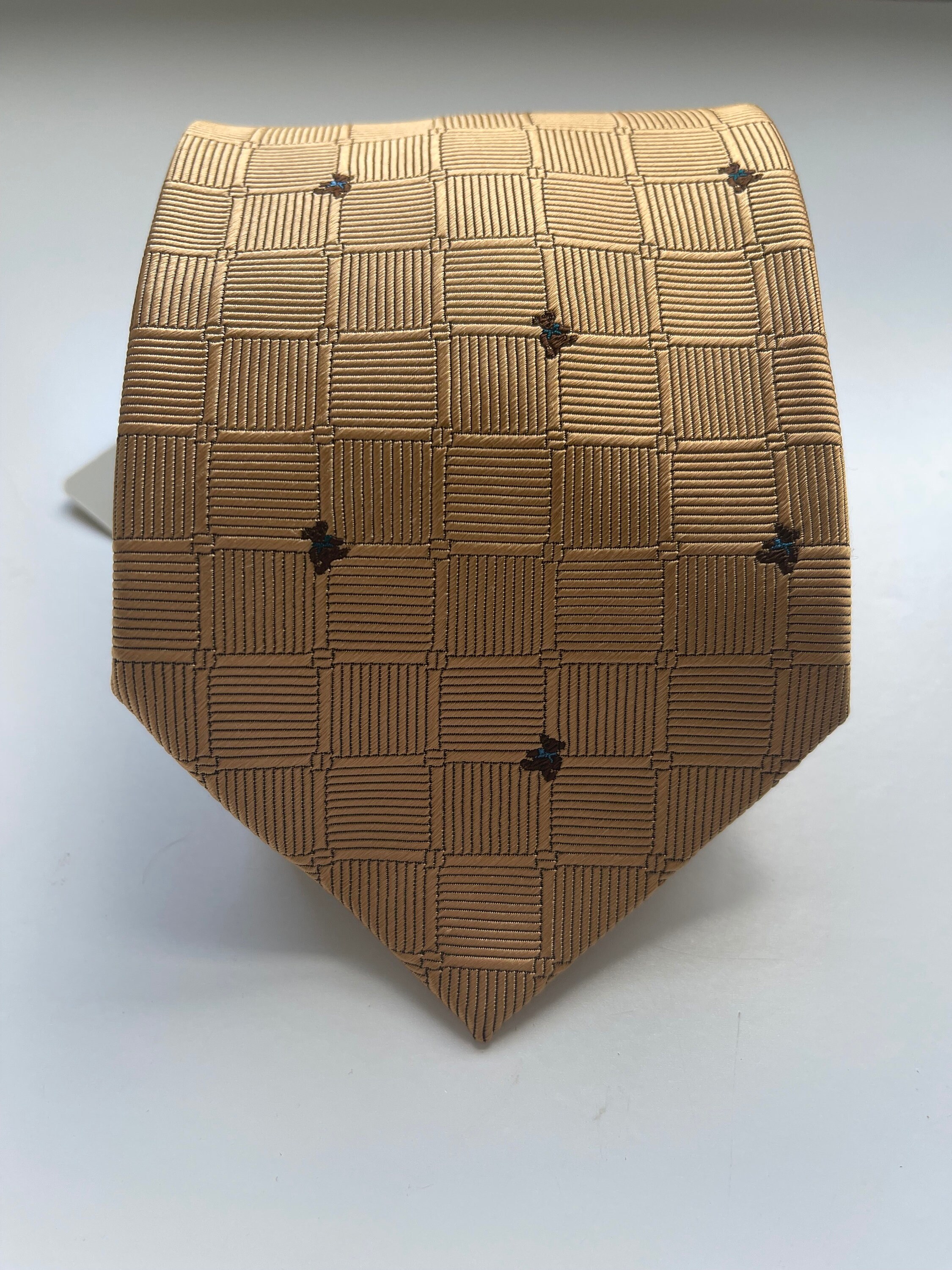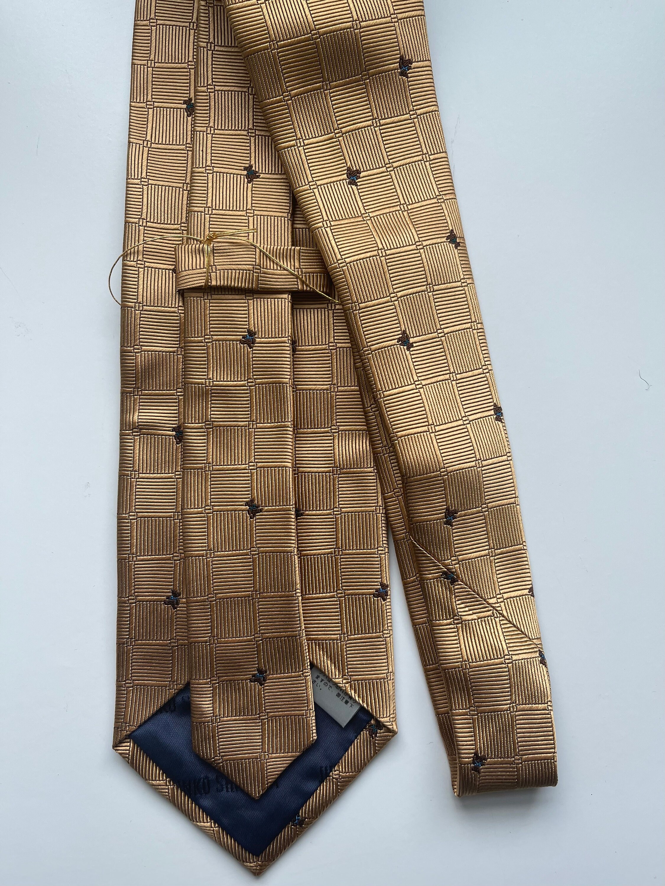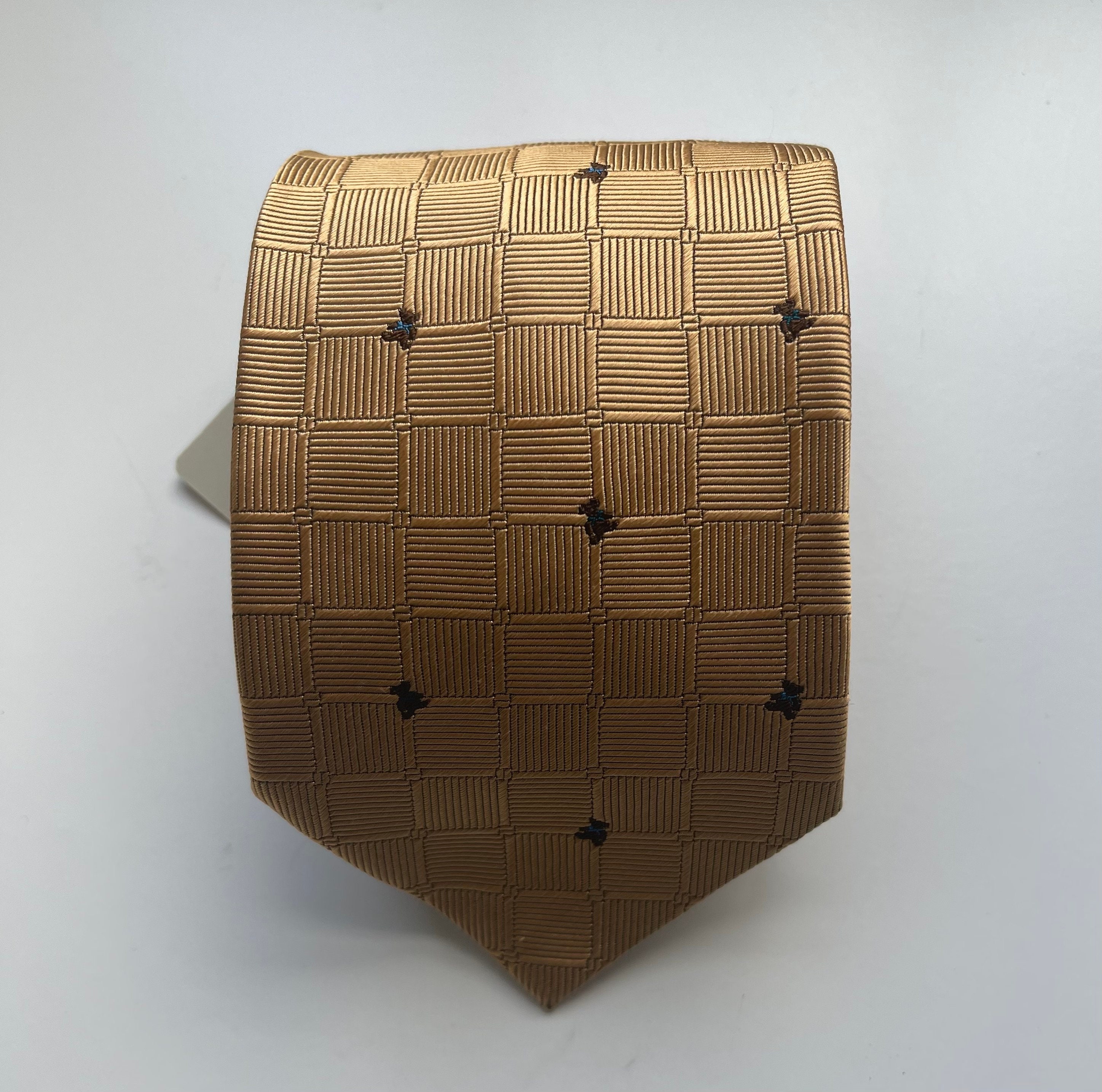 Vintage Junko Shimada Necktie. Classic style necktie with foulard pattern of repeating tiny teddy bears on a rich gold. NWT.