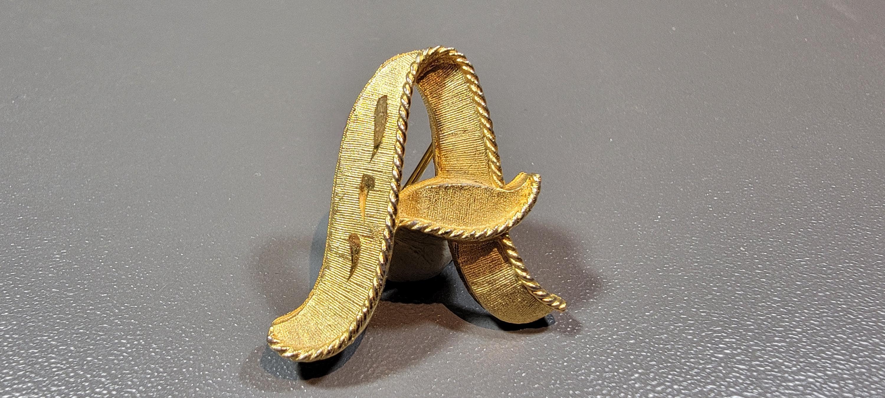 Vintage brooch cursive gold tone base metal A