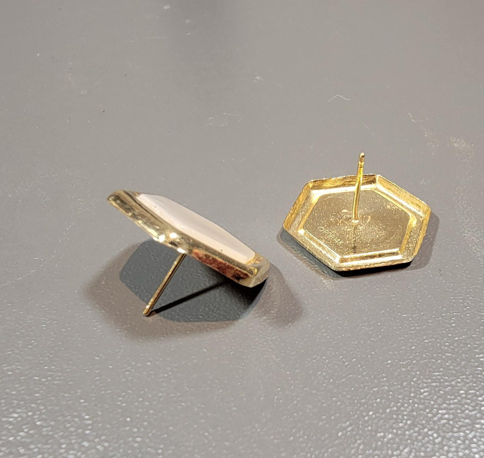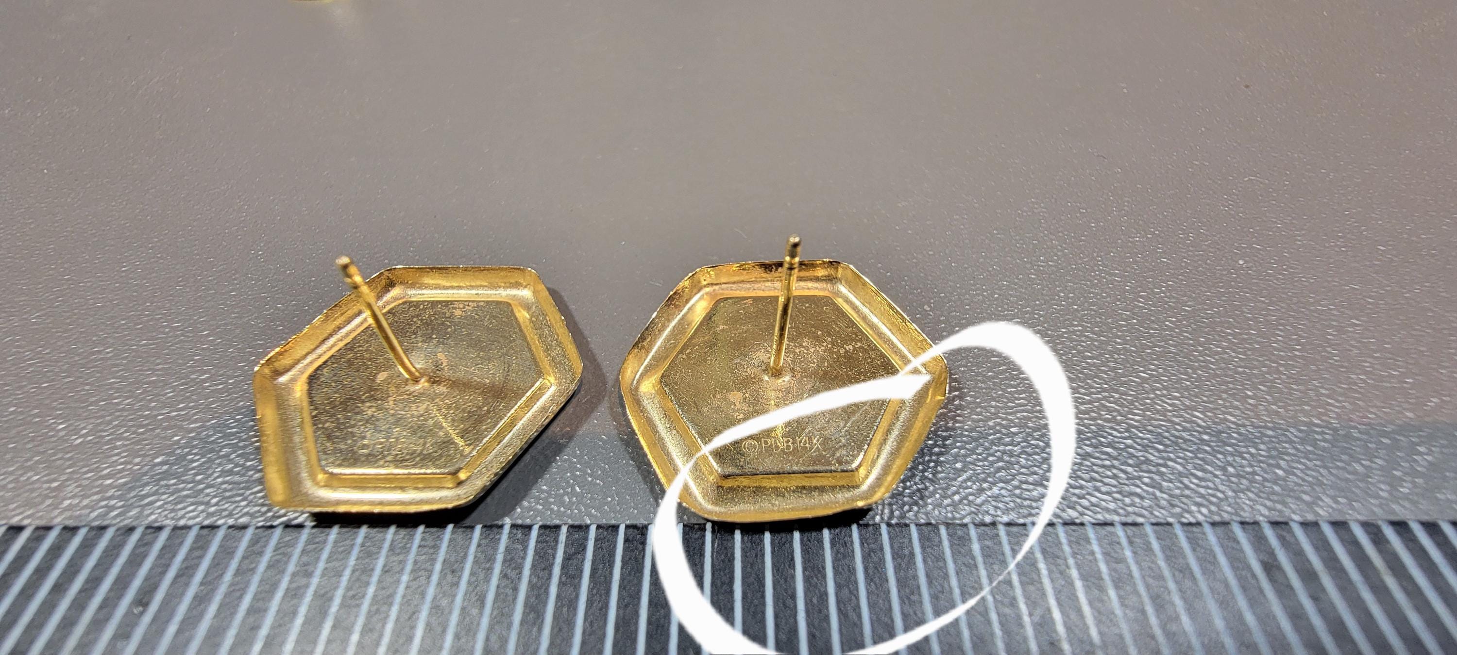 honeycomb shaped stud earrings.