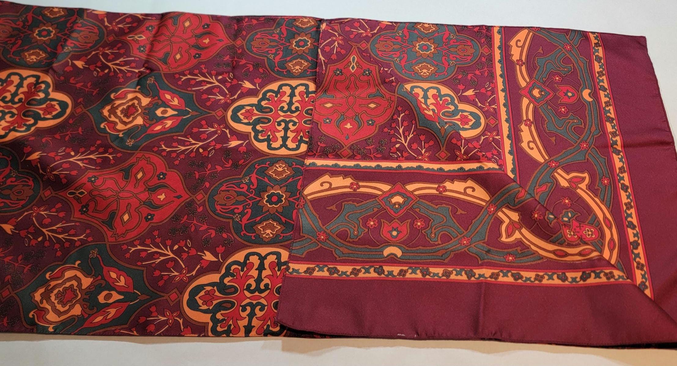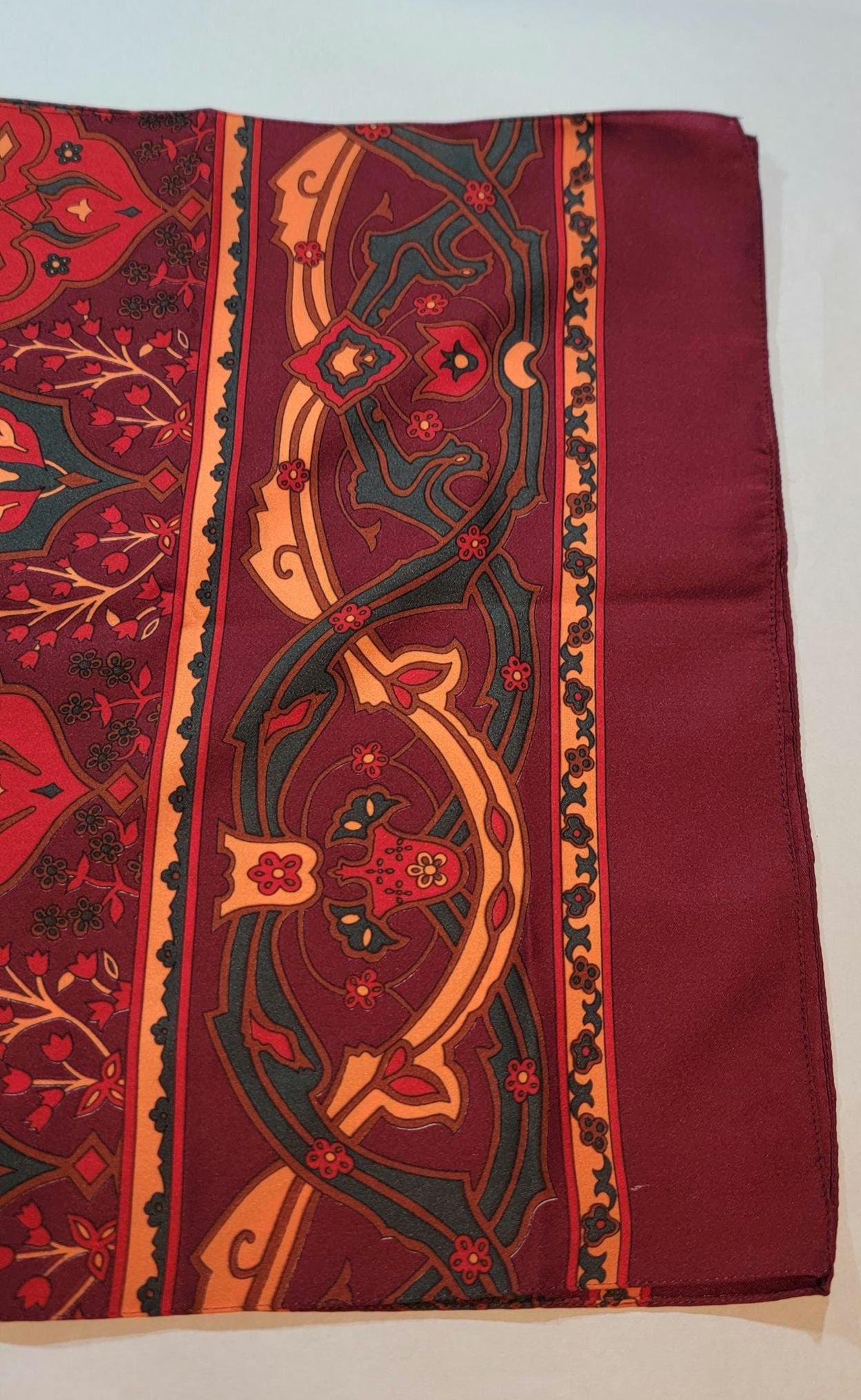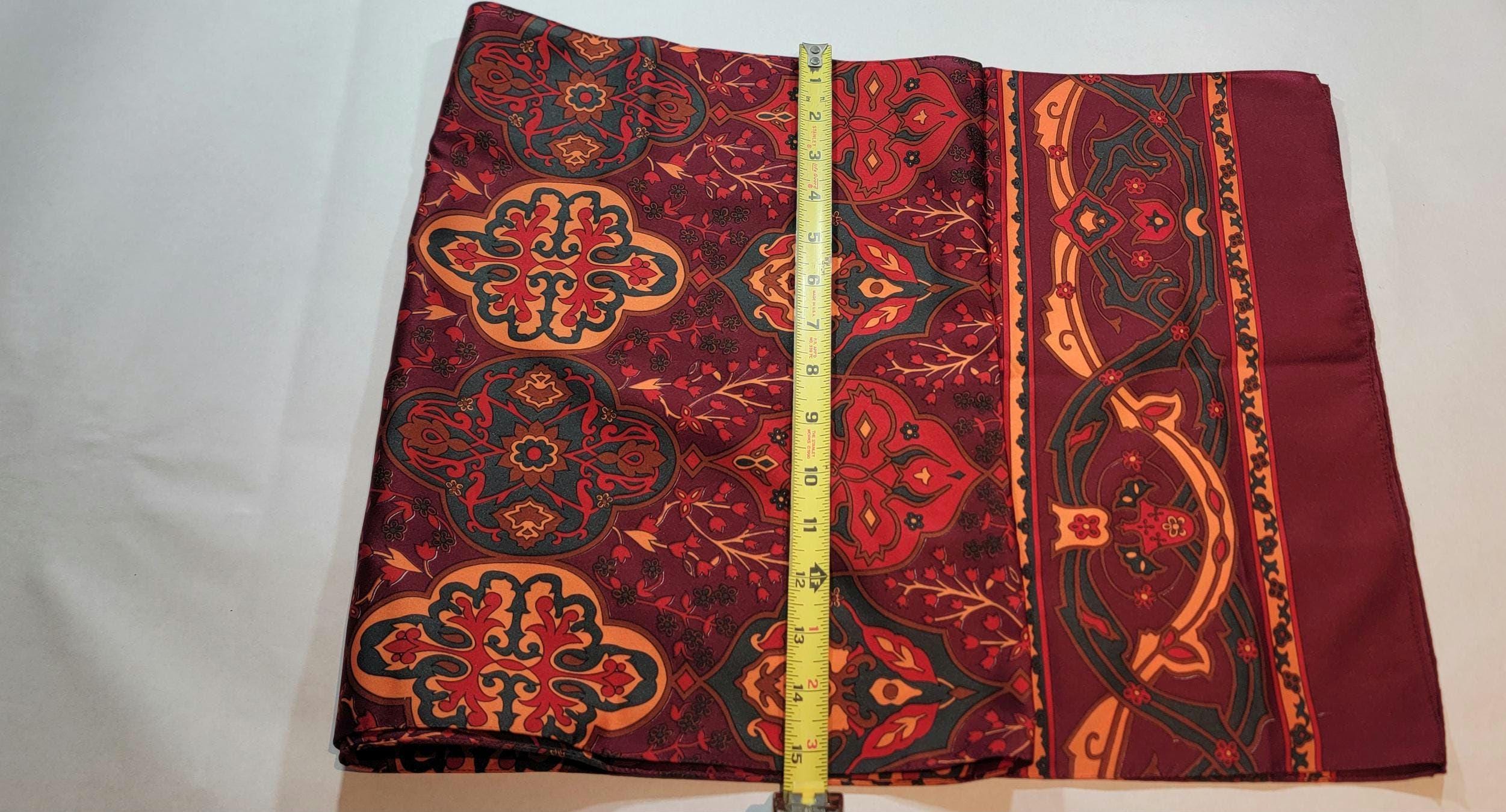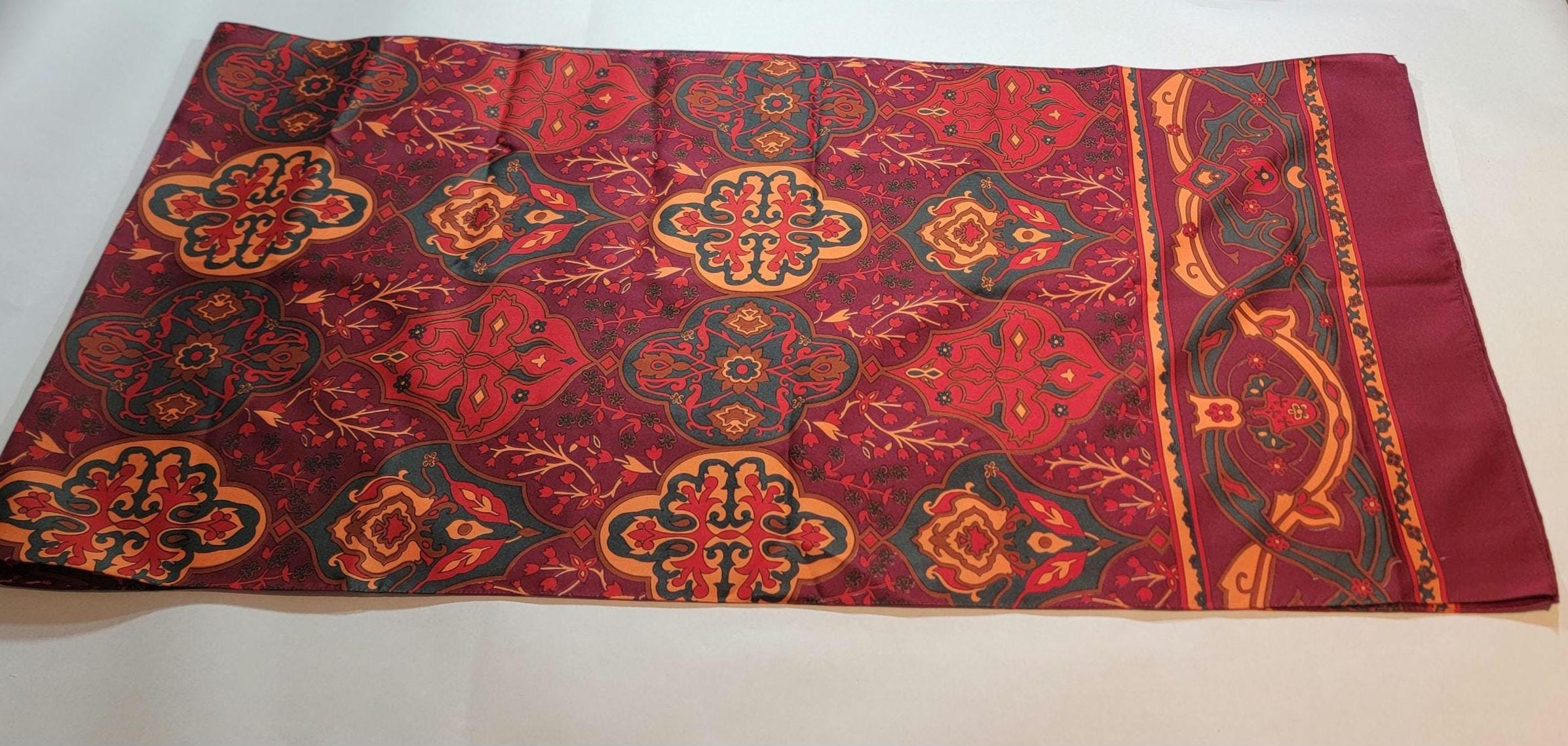 Gorgeous Maximalist Hot Tangerine Orange and Pink Neon accents throughout updates this traditional design. Dynamic Arabesque Design geometric style. Drapes beautifully, very soft. Exotic pattern.