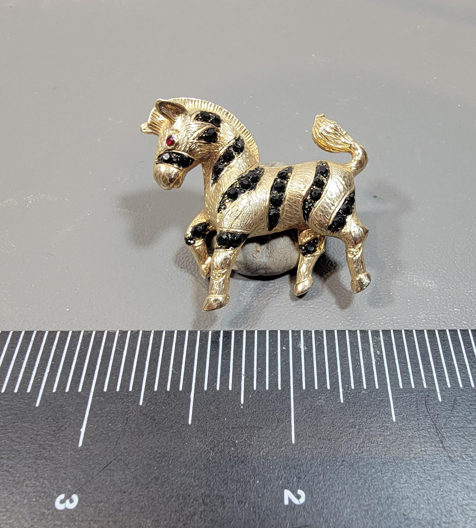 zebra brooch black rhinestones stripes gold tone metal