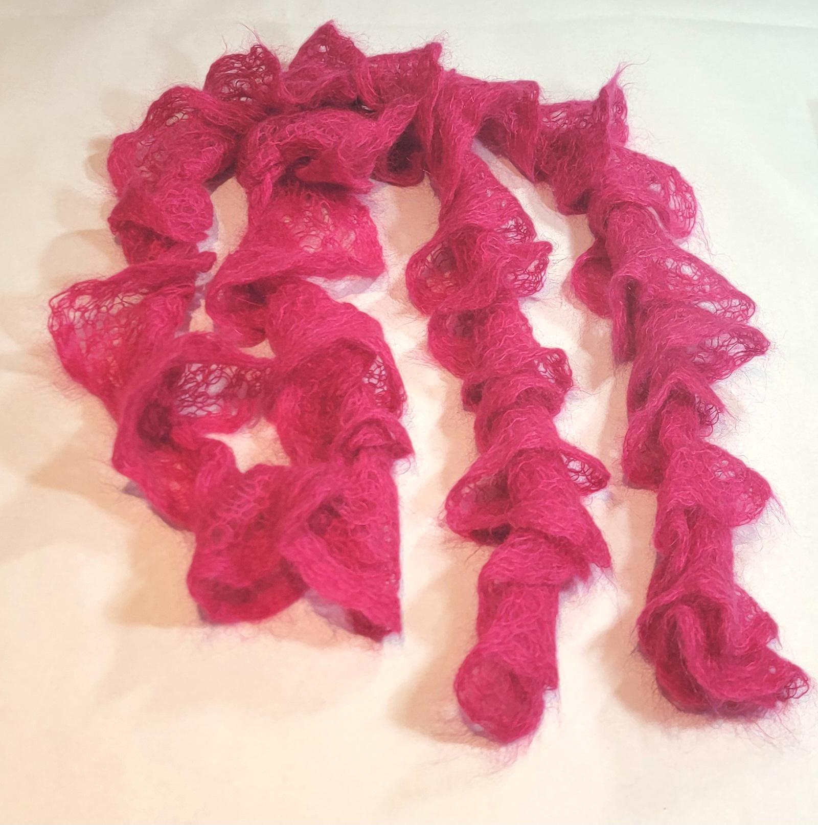 pink wool scarf knitted boa 68 inches long