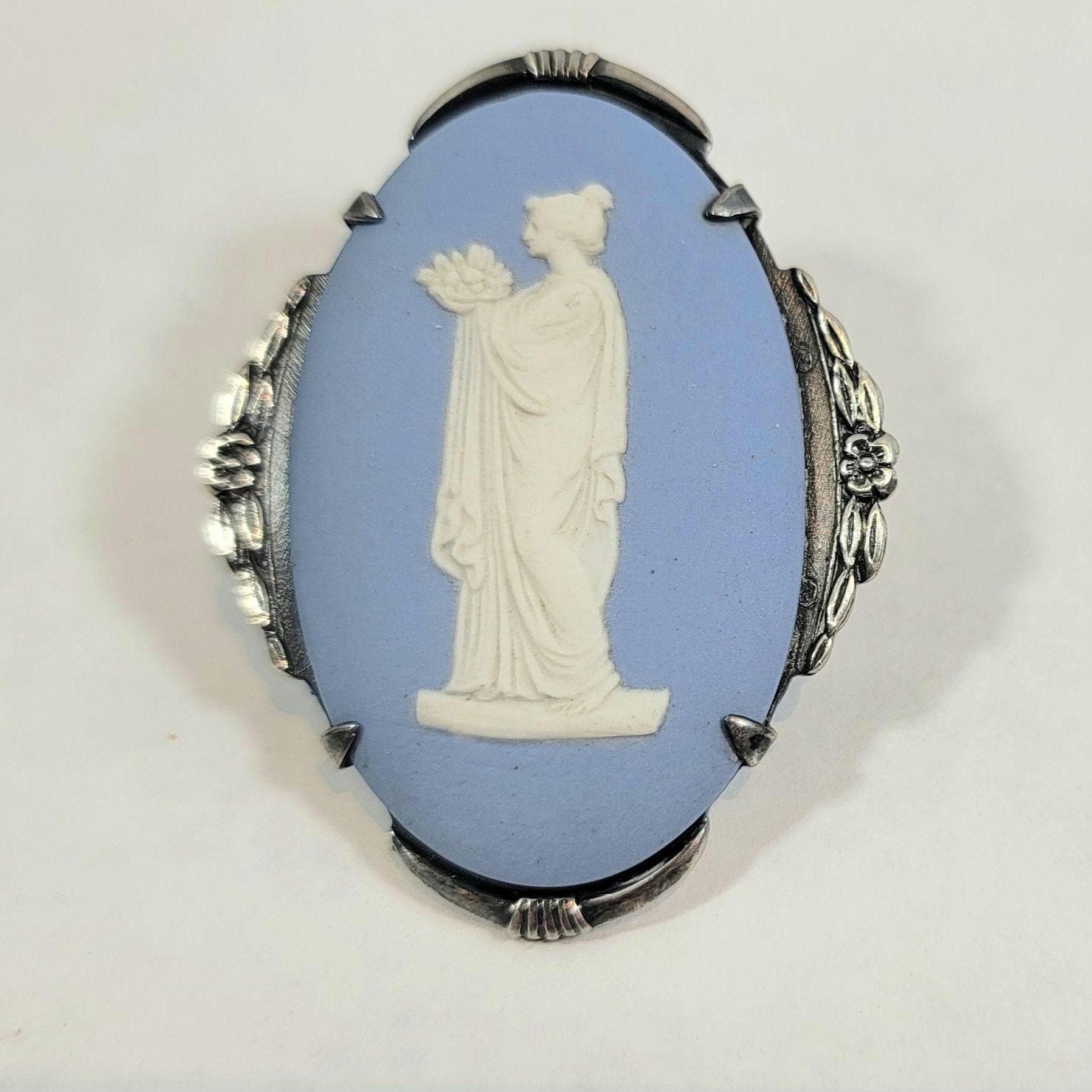 oval sterling mounted blue jasperware brooch